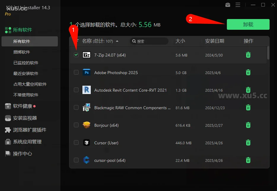 IObitUninstaller,软件卸载程序。IObitUninstaller是款强悍的驱动级软件卸载工具,有强制卸载、批量卸载、安装监视器、文件粉碎、软件健康检查、卸载Windows更新补丁、移除浏览器工具栏和插件等功能。