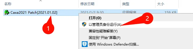 打开【补丁】文件夹中,右键管理员运行补丁文件