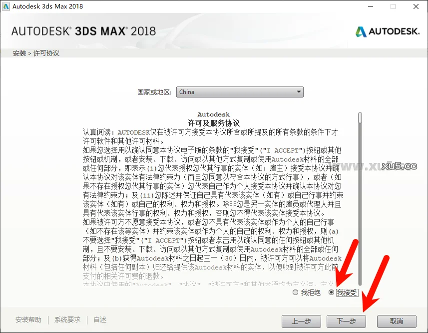 点击我接受,下一步