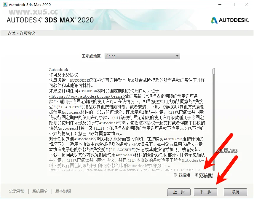 输入3dmax2020序列号和密钥666-69696969,128L1,再点击下一步