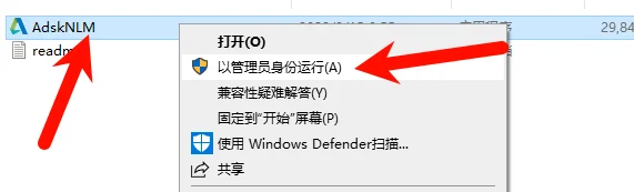 右键管理员运行其中的AdskNLM,记得关闭杀毒运行