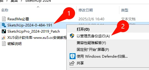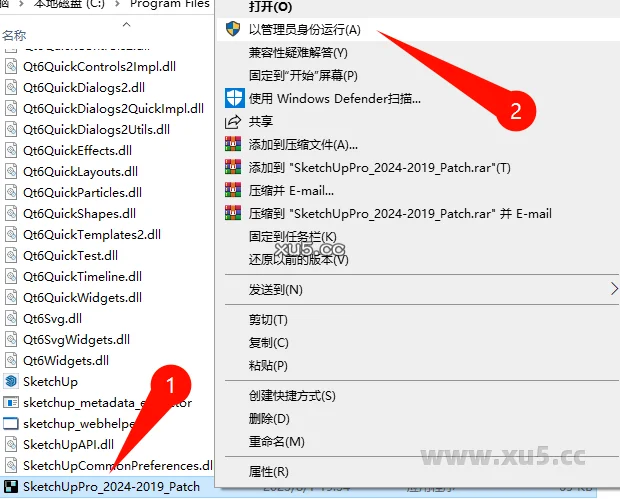 将破解补丁SketchUpPro_2024-2019_Patch复制到安装目录,并且右键管理员运行