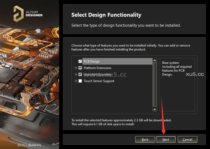 5. 选择设计功能,默认勾选,直接点击 Next。