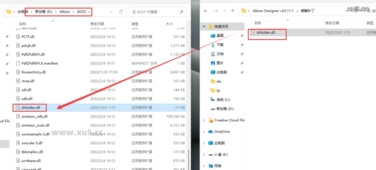 13. 将安装包【补丁文件】文件夹中的【shfolder.dll】复制到【安装目录】下。