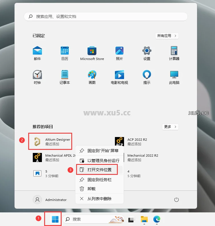 11. 在电脑开始菜单里面找到 Altium Designer,鼠标右键打开文件位置。
