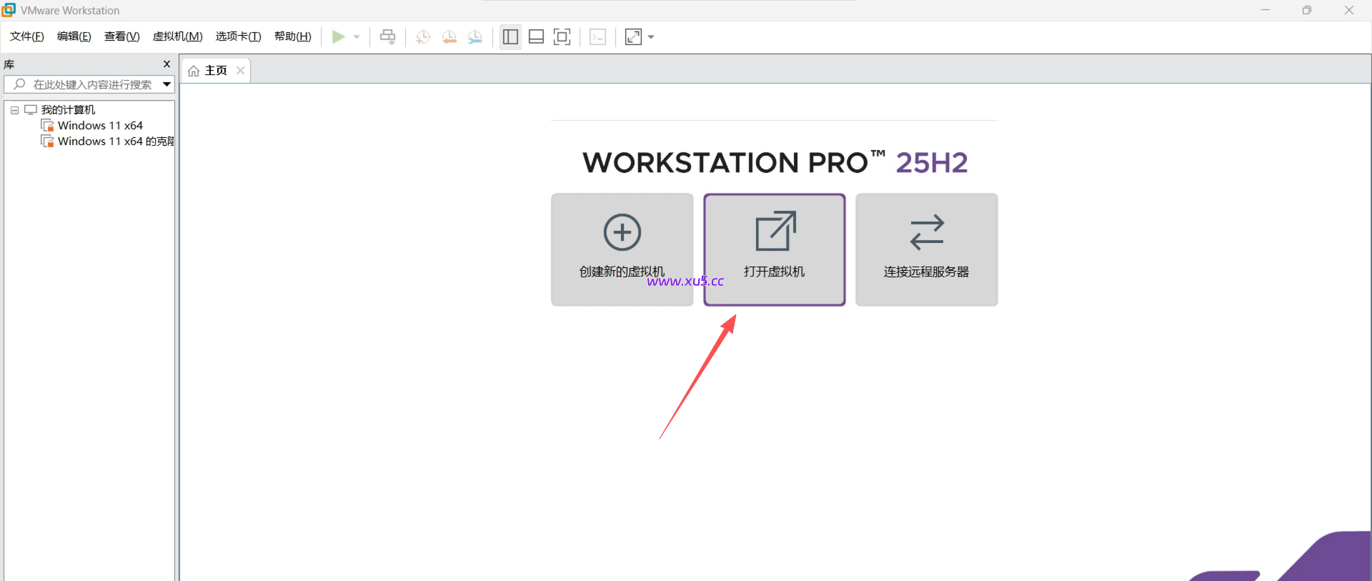 虚拟机直接默认全程安装就行,安装完成后,教程中使用的是最新版25h2VM虚拟机,选择【打开虚拟机】