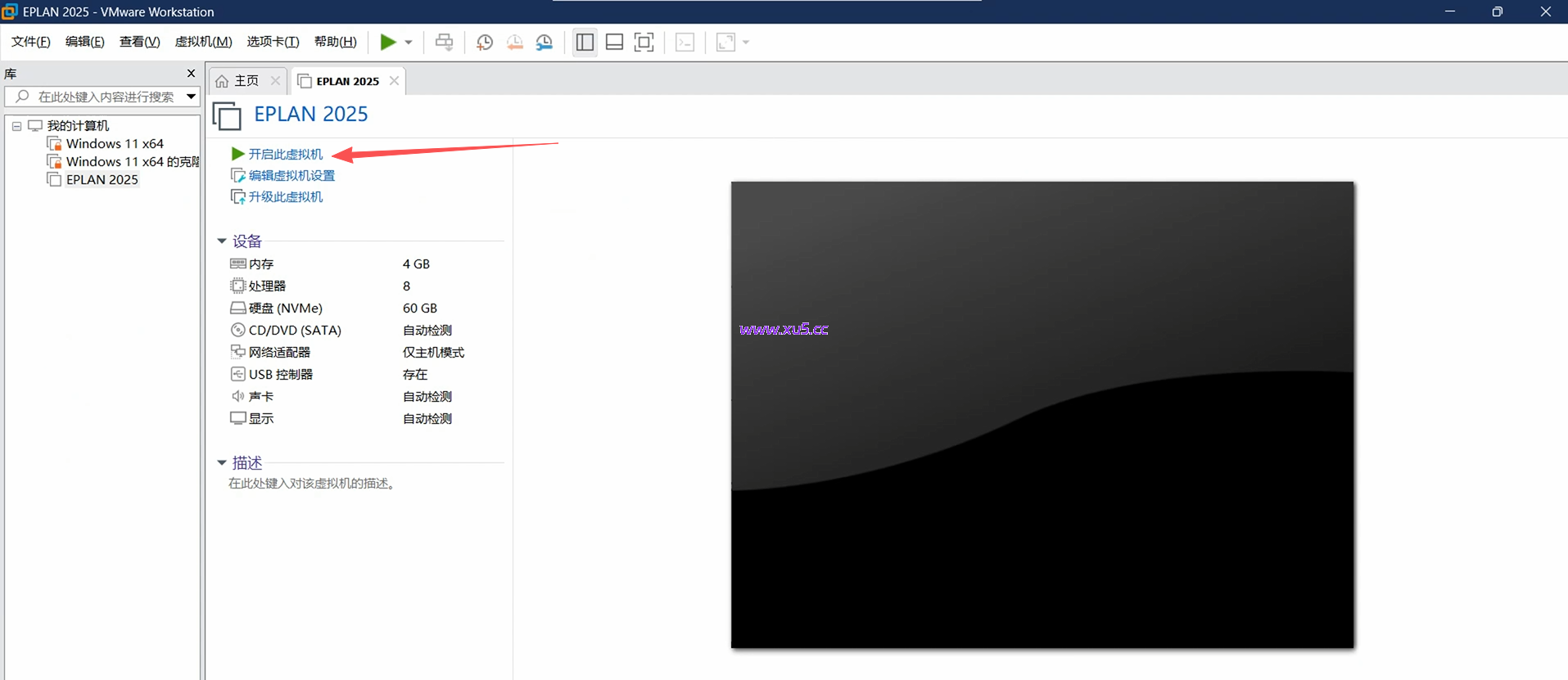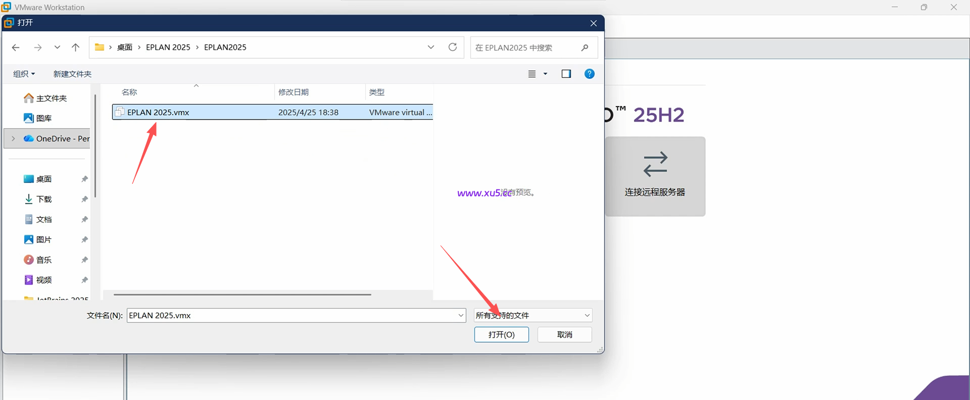 然后选择解压出来的【eplan 2025.vmx】