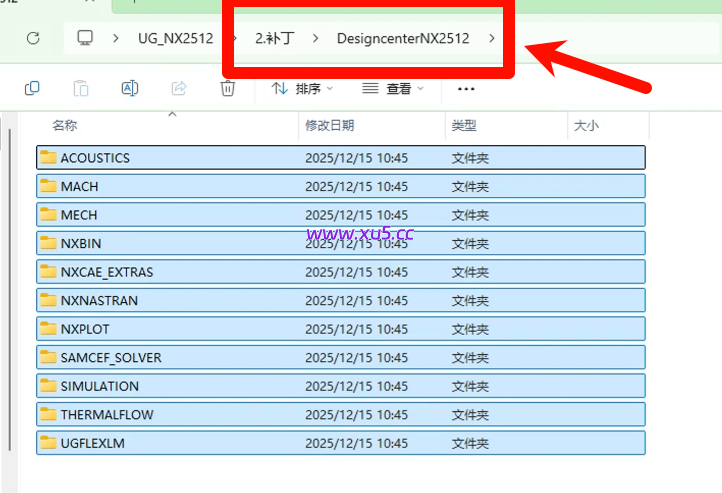 然后打开安装包,【补丁】文件夹中的【DesigncenterNX2512】,复制其中的所有文件