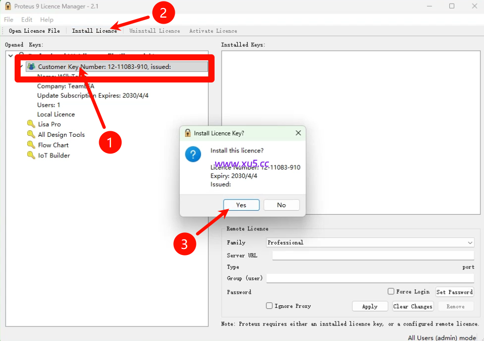 1.选中【Customer Key。。。。。】—2.点击【Install。。。】—3.点击【yes】
