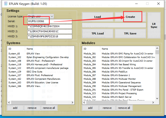 17. 在Serial栏目填写:“WUP0U10066”,点击“Create”