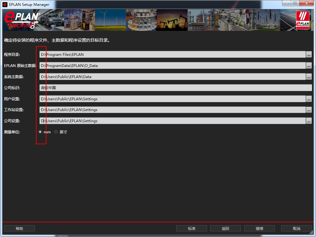 依次修改路径地址中的首字符 C 可更改安装位置,本例安装到 D 盘