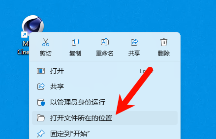 前往开始菜单中找到c4d2023的图标拖到桌面,然后右键c4d图标打开文件所在位置(也就是安装目录)