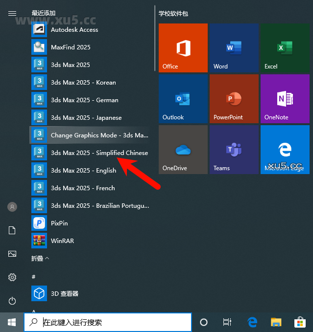 前往开始菜单找到3dmax 简体中文运行,后续直接桌面打开就是中文了
