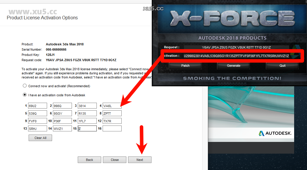 输入序列号066-66666666,密钥128J1,然后点击next。