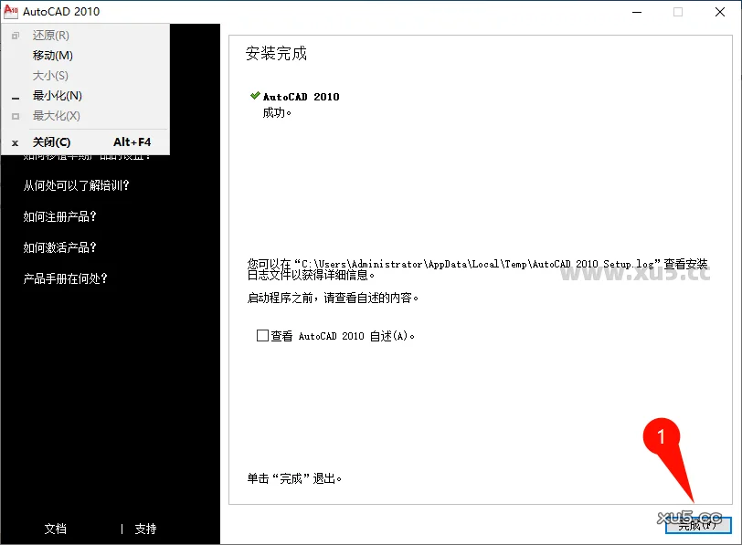 安装完成关闭