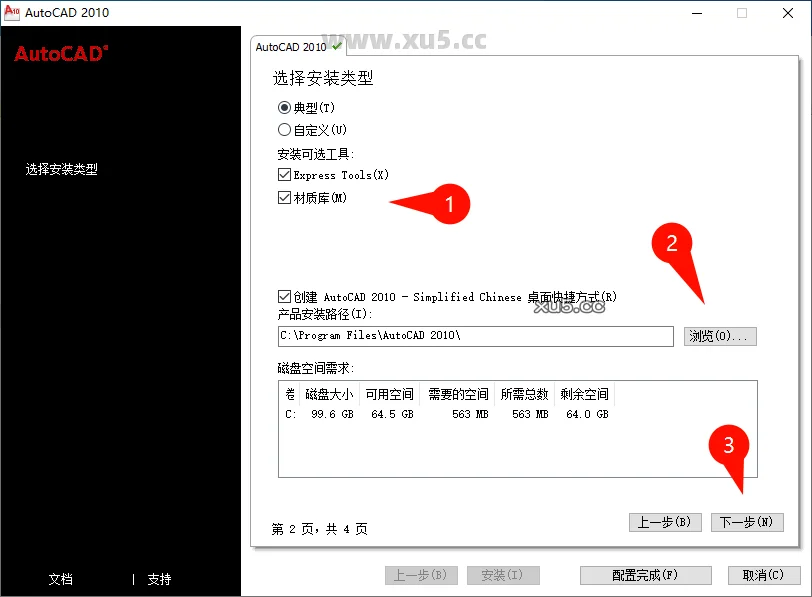 勾选材质库以及设置安装位置