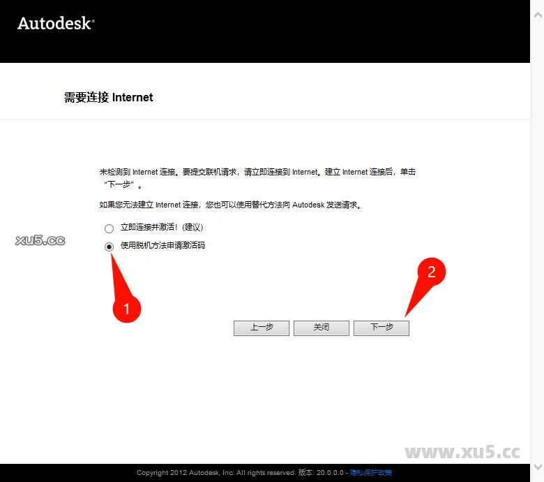 选择【使用脱机方法申请激活码】,点击下一步,后直接关闭软件,重新再次打开软件