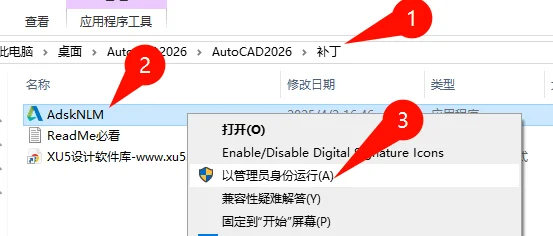 打开补丁文件夹右键管理员运行AdskNLM,运行期间不要操作。等待完成