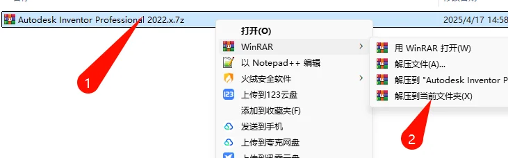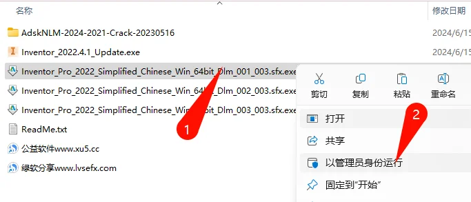 解压完成后右键管理员运行Inventor_Pro_2022_Simplified_Chinese_Win_64bit_Dlm_001_003.sfx