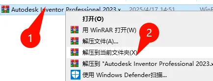 解压完成后右键管理员运行Inventor_Pro_2023_Simplified_Chinese_Win_64bit_Dlm_001_003.sfx