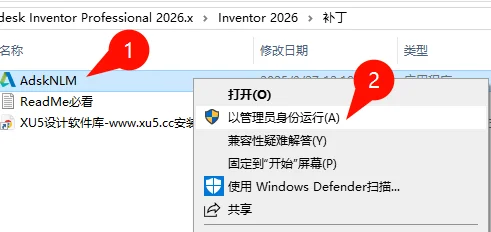 打开补丁文件夹,右键管理员运行补丁文件夹中的AdskNLM