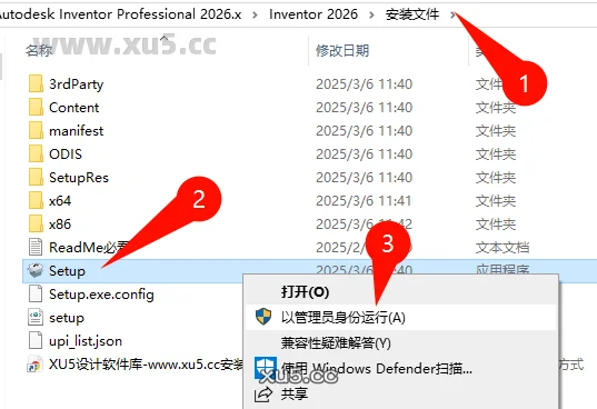 打开安装文件夹,右键管理员运行安装文件中的setup