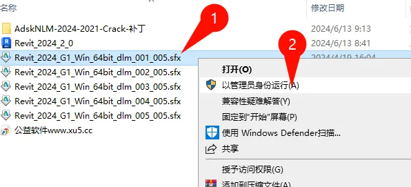 右键管理员运行Revit_2024_G1_Win_64bit_dlm_001_005.sfx,开始安装