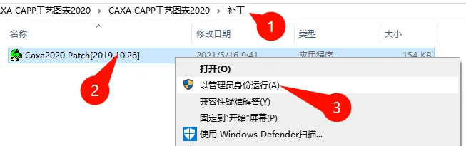然后打开【补丁】文件夹中,右键管理员运行补丁文件