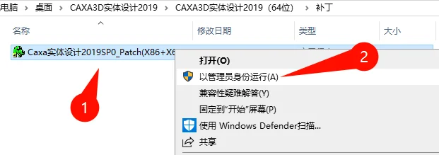 打开【补丁】文件夹中,右键管理员运行补丁文件