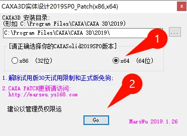 选择【X64】安装包是多少位数就选择多少位,核对一下上面的安装目录是否一致,如果默认安装就不管。点击【go】