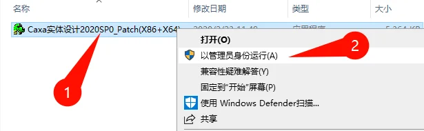 打开【补丁】文件夹中,右键管理员运行补丁文件