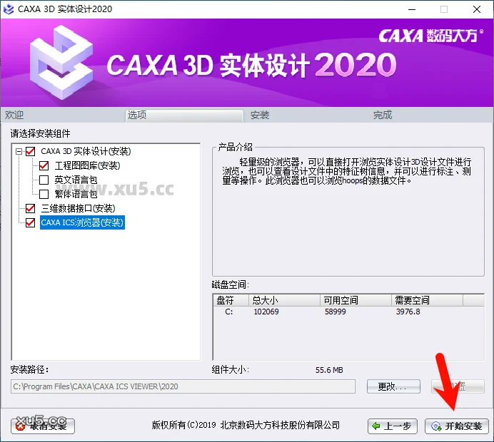 勾选左侧组件,点击【开始安装】