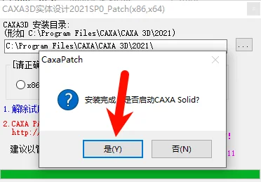 提示【Patch操作已完成】,点击是
