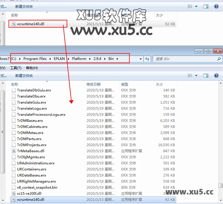 将里面的“vcruntime140.dll”文件复制到下面的路径中: 默认路径为【C:Program filesEplanPlatform2.9.4bin】。