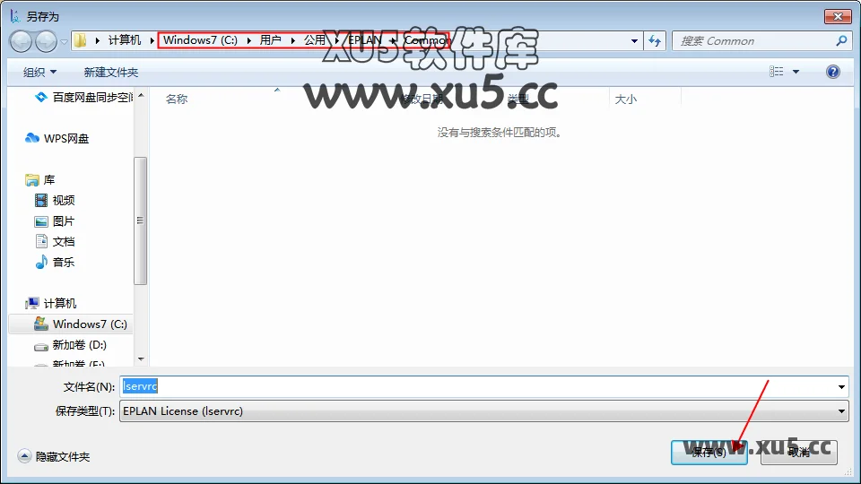 在这个界面定位至目录C:UsersPublicEPLANCommon,也就是C盘下的“用户”-“公用”-“EPLAN”-“Common”,然后点击“保存”。
