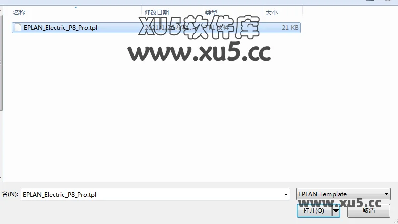 弹出下图情况,选择“Keygen”文件夹下的“EPLAN_Ultimate.tpl”文件,选中并打开。