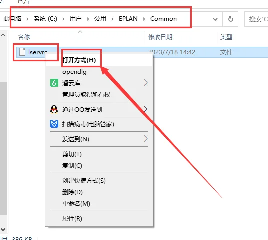 20. 打开路径:“C:用户(user)公用EPLANCommon”,右键打开“lservrc”文件,以记事本形式编辑