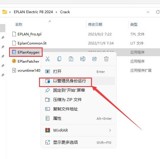 14. 选择EPlanKeygen,右键以管理员身份运行。