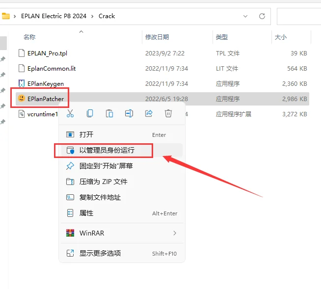 12.选择【Crack】文件夹中EPlanPatcher右键以管理员身份运行。