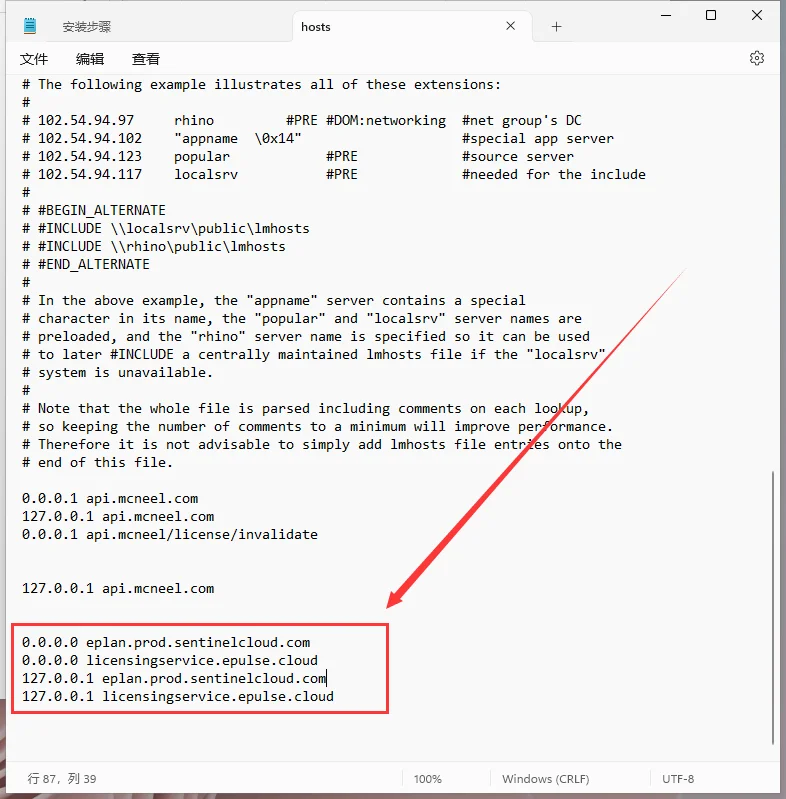127.0.0.1 licensingservice.epulse.cloud 然后保存。