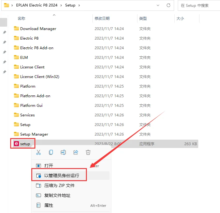 2. 打开【Setup】文件夹,选择【setup】安装程序右键以管理员身份运行。