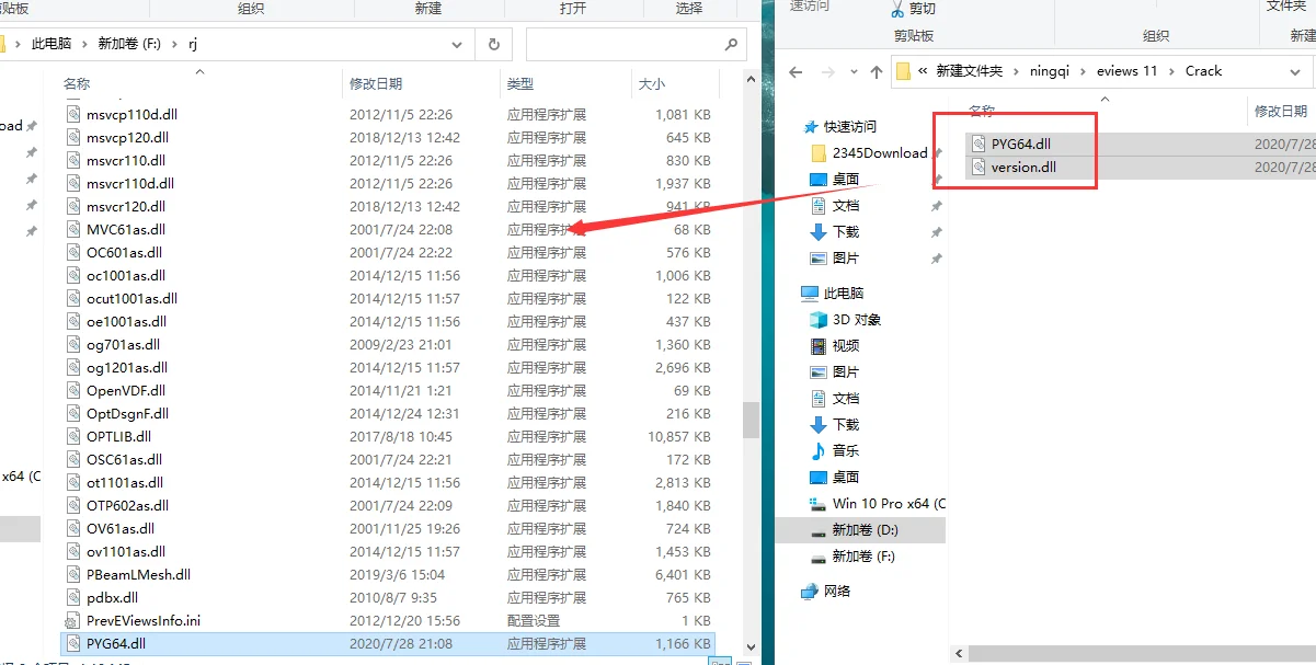 15 将 【Crack】 文件夹的破解补丁【PYG64.dll】和【version.dll】复制到【安装目录】下。