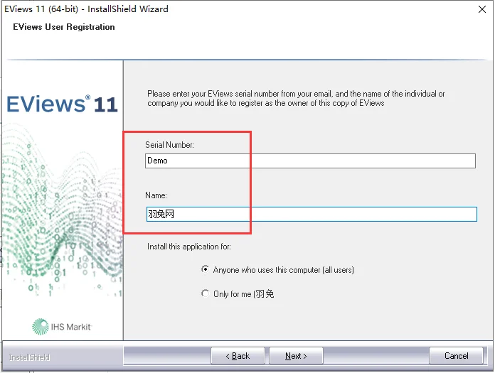 5 输入 Serial Number:【Demo】 和 Name(随意)。