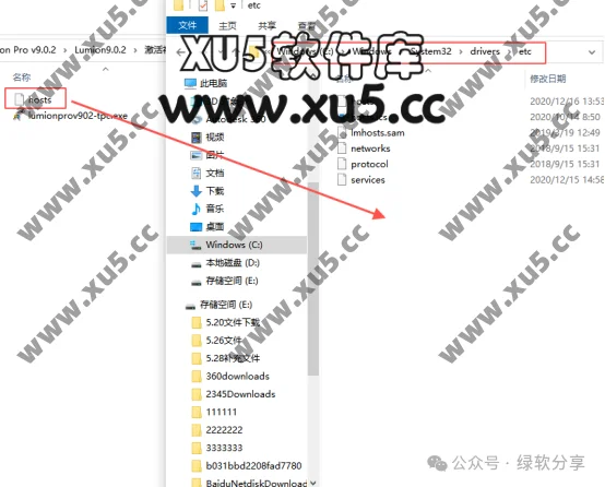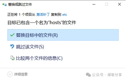 8.把激活补丁里面的”hosts”文件复制到路径:C:WindowsSystem32driversetc