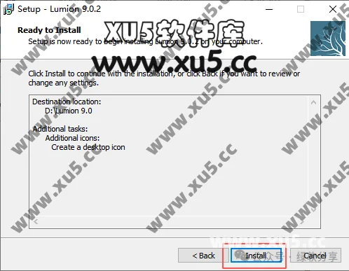 5.Lumion 9 安装准备就绪,点击”Install” 。
