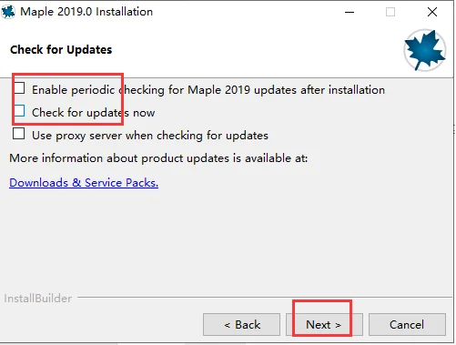 8.检查更新,将二个选项取消勾选,然后 Next。