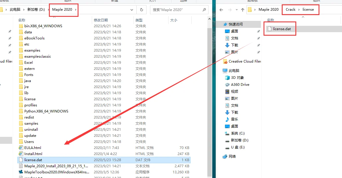 14.打开安装目录后退一步,将 【Crack】 文件夹内的两个文件夹【bin.X86_64_WINDOWS】和【license】复制过去并替换,即激活成功。
