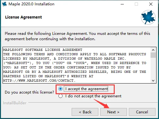 4.勾选接受的选项,然后 Next 下一步。
