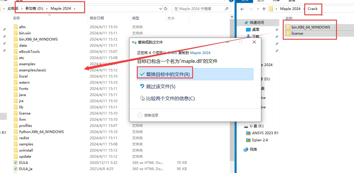 15.将安装包【Crack】里面的所有破解文件复制到刚才后退的安装目录位置下替换。