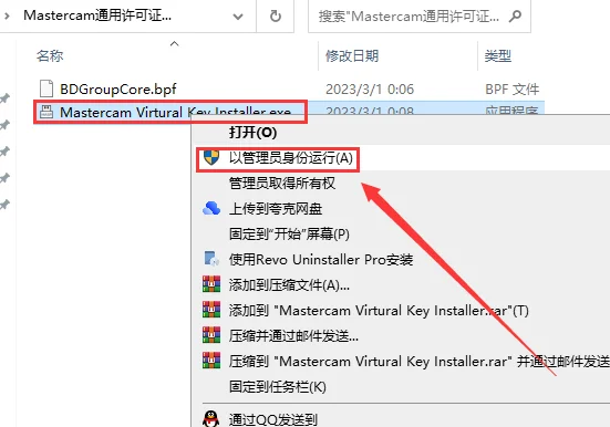 14. 选择Mastercam Virtural Key Installer.exe,鼠标右键以管理员身份运行。